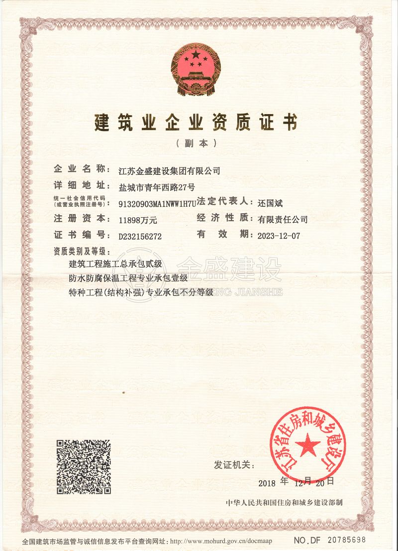 • 施工總承包貳級新防水防腐保溫工程專業(yè)承包一級